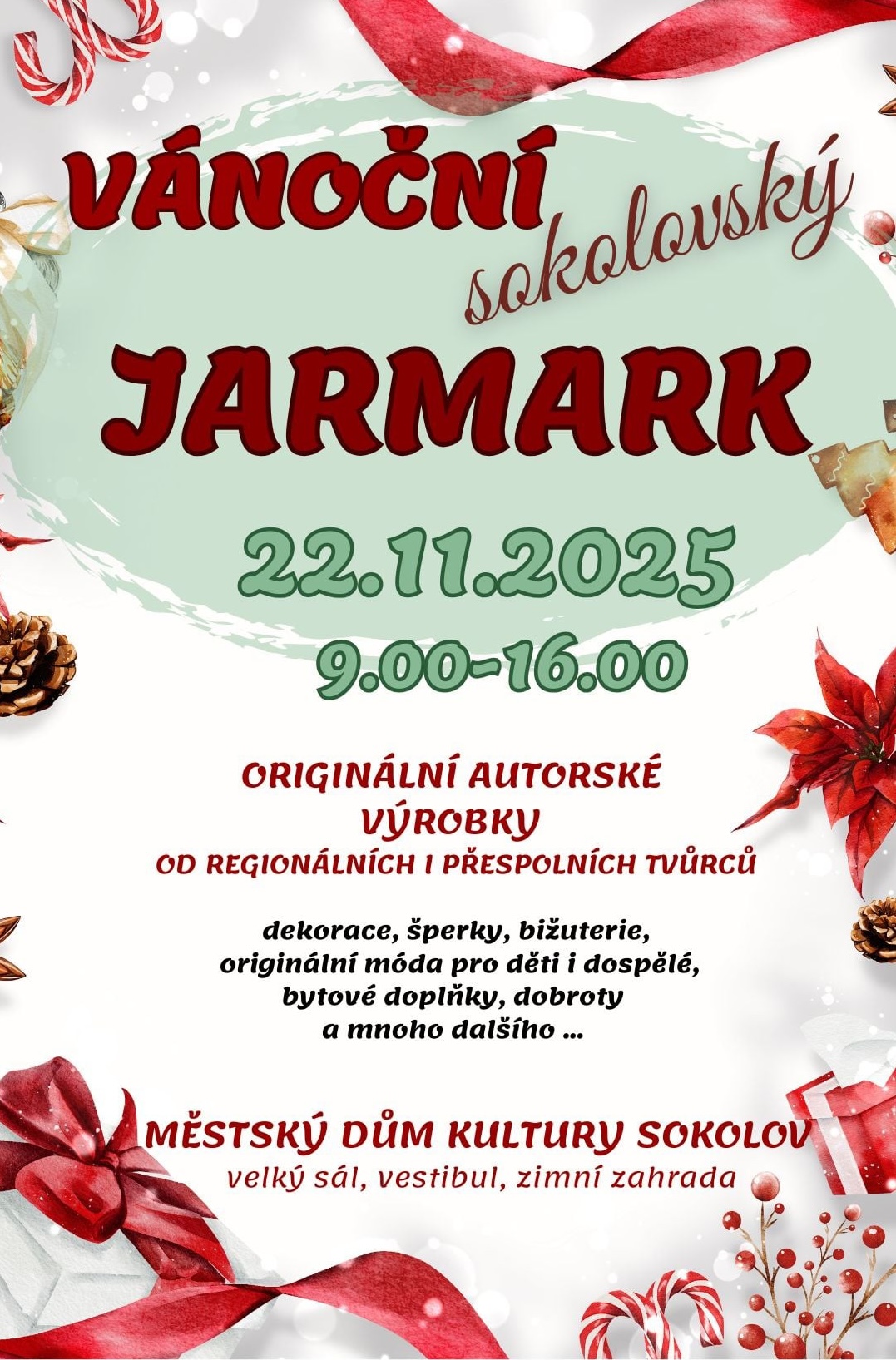 Vánoční sokolovský jarmarkAkceSOBOTA 22. 11. 2025Vánoční sokolovský jarmark– MDK Sokolovkalendář našich akcí ZDE